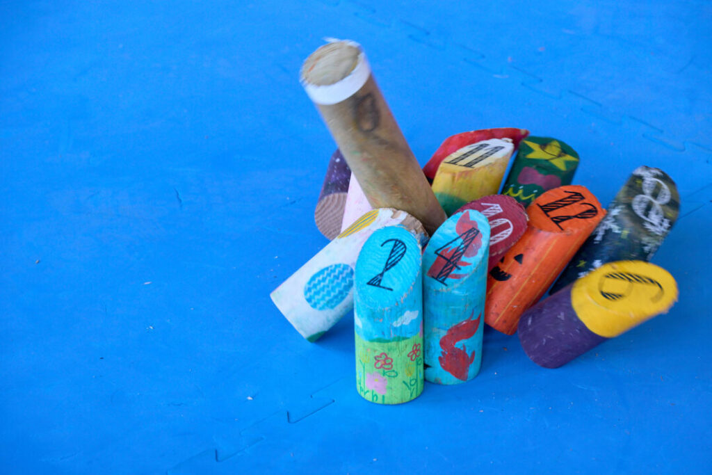 「屋内こども広場 まちなかの森 もっくる」の中でも、梅花女子大学の学生による「木の絵本読み聞かせ」、立命館OICモルックサークル Möritsによる「モルック体験」が開催されました。