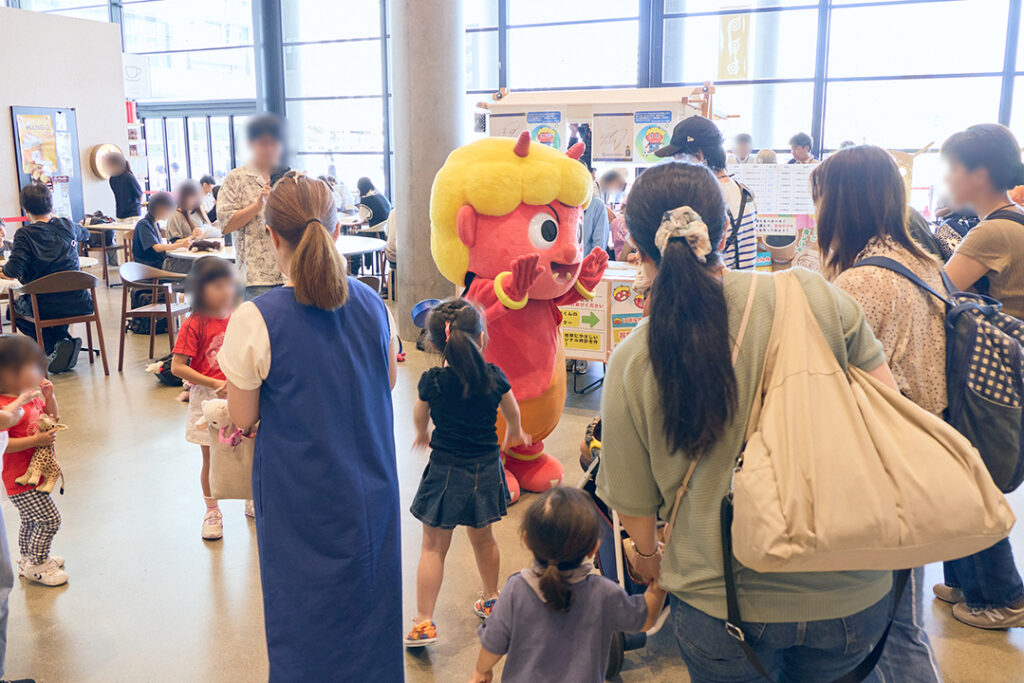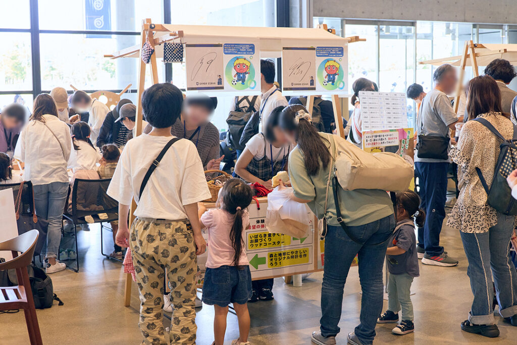 ワークショップは満員御礼!「これママにプレゼントする!」という声も多く聞こえ、家族の思い出に残る体験となりました。いばらき童子も遊びに来てくれて、会場が大盛り上がり。