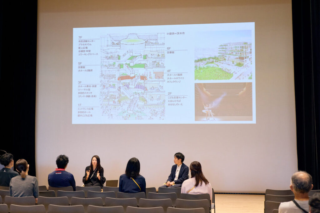 茨木市こども育成部、まちなかの森もっくる、株式会社明日香の各担当者が加わり、「私のもっくる」をテーマに当時の写真や映像を紹介しながら、開設までのエピソードや思いを語ってくださいました。