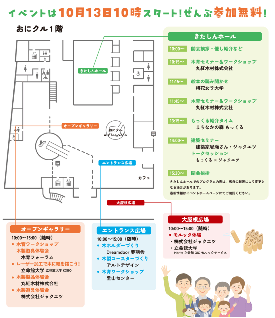 NPO法人木育フォーラムがプロデュースする「きとひろば」では、カンナ屑プールや木のすべり台、大型おもちゃで思いっきり遊べる木の広場が登場!五感をつかって木とふれ...